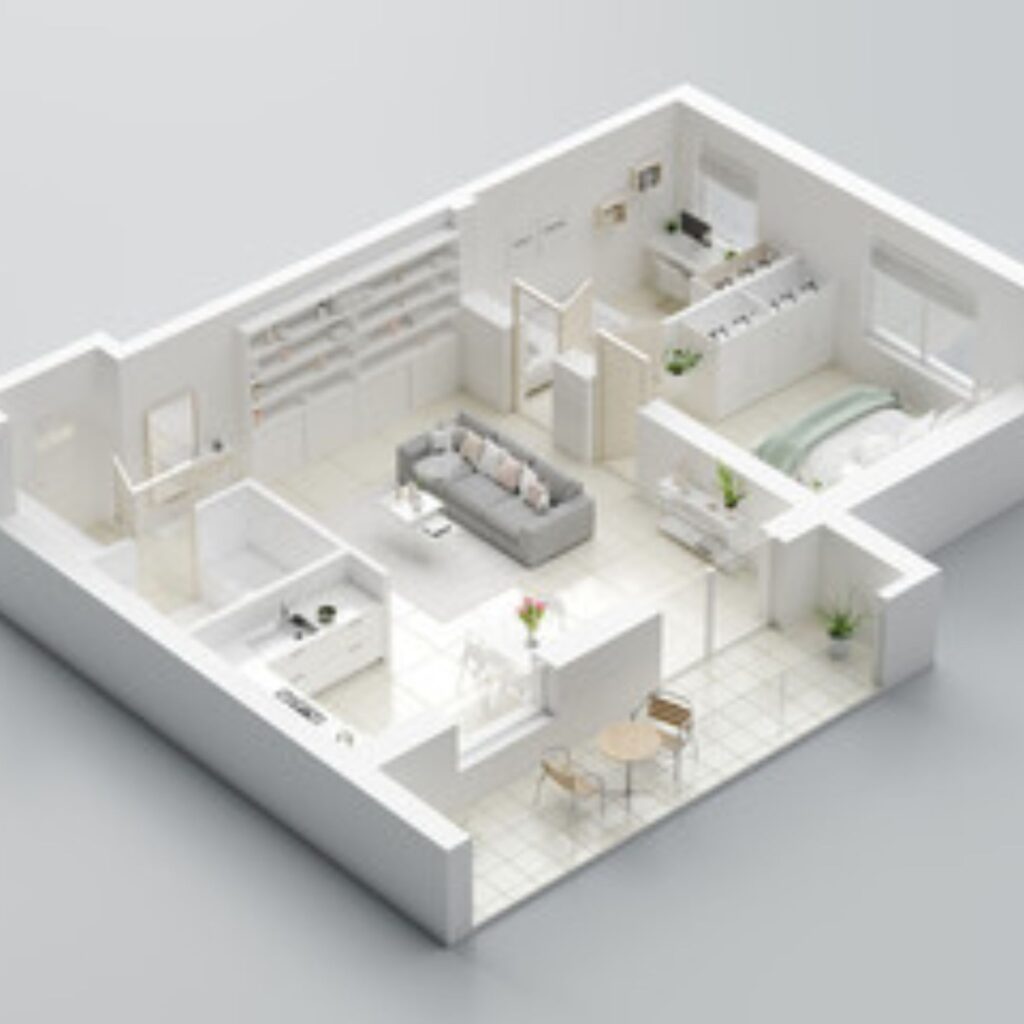 High-fidelity architectural rendering featuring modern structural elements such as mezzanine levels, hanging fascias, and curved aesthetics.